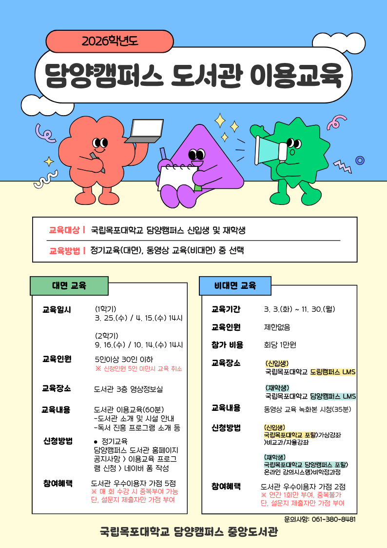 2026학년도 1학기 담양캠퍼스 도서관 이용교육 신청 안내