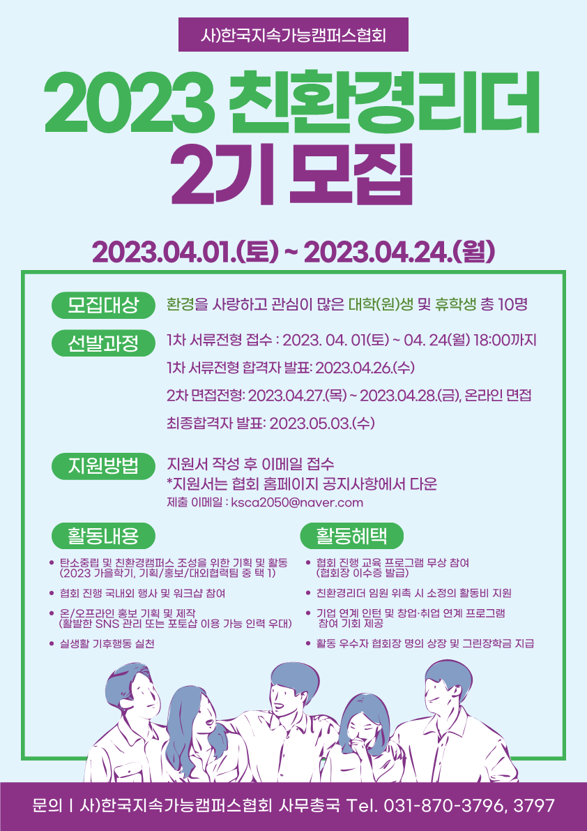 - 문의사항: 사)한국지속가능캠퍼스협회 김정빈 간사(☎ 031-870-3796, 3797)