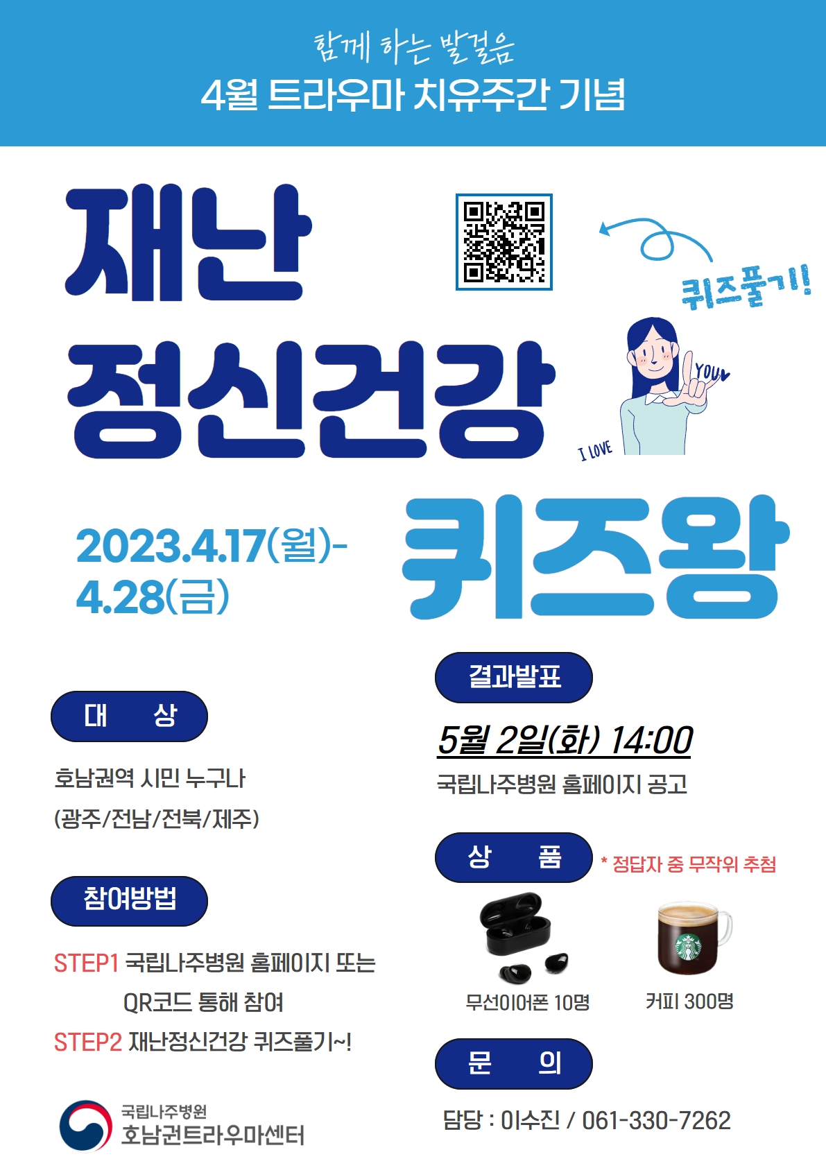 - QR코드 방문을 통한 재난정신건강 퀴즈 풀기