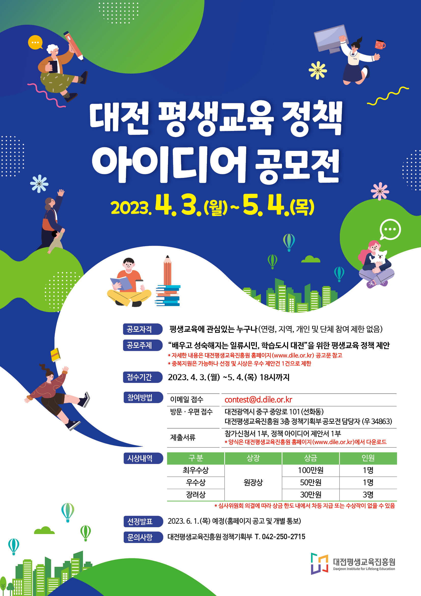 가. 공 모 명: 대전 평생교육 정책 아이디어 공모전(누리집 링크: www.dile.or.kr )