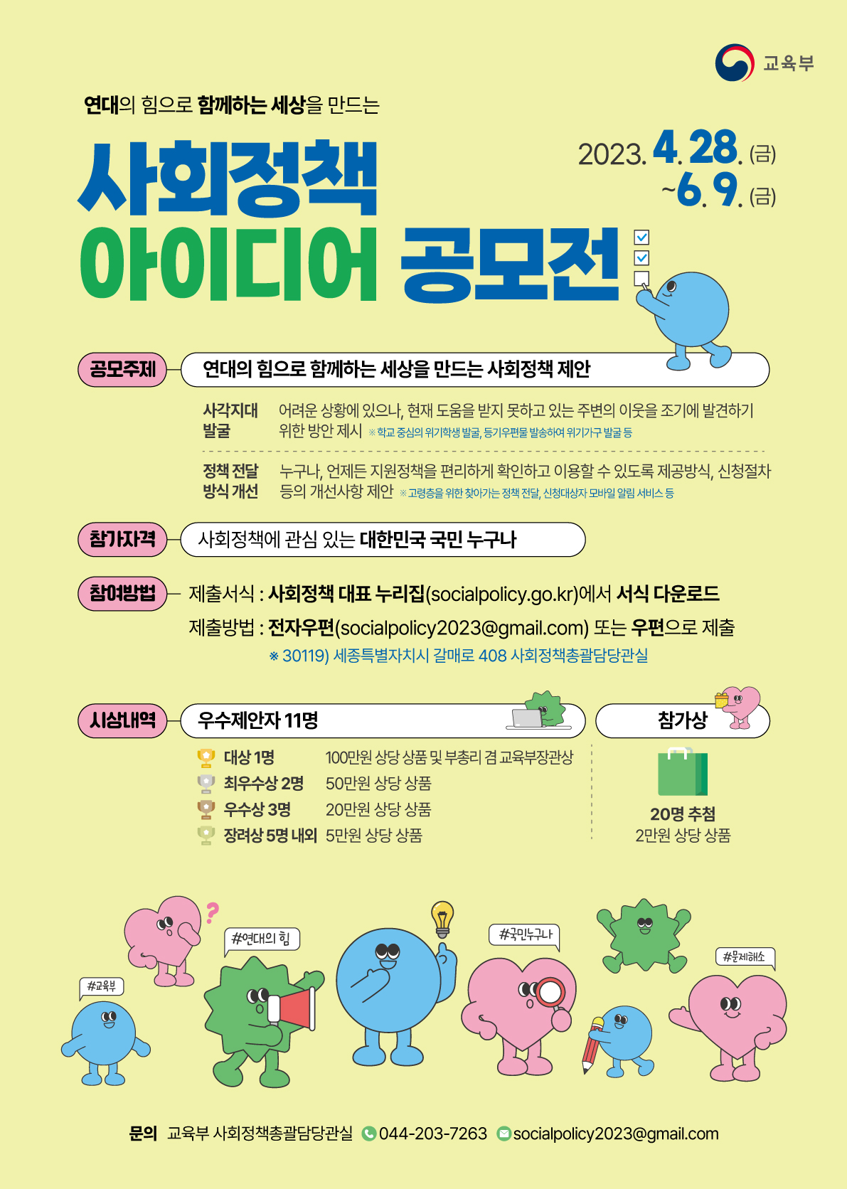 다. 참여방법 : 사회정책 대표 누리집(socialpolicy.go.kr) 접속해 서식 다운로드 → 작성 후 전자우편(socialpolicy2023@gmail.com) 혹은 우편 제출