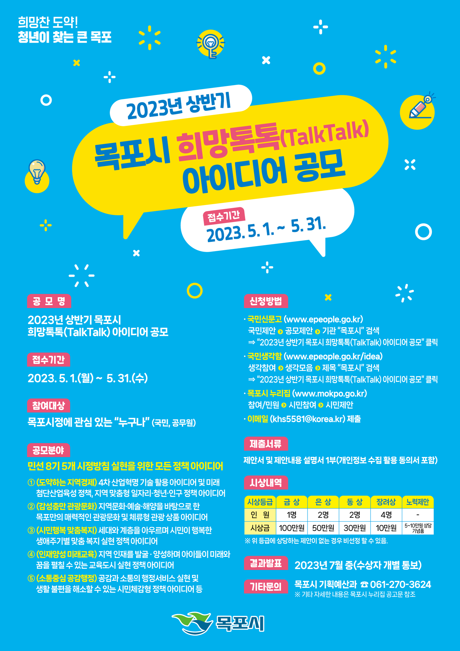 가. 공 모 명 : 2023년 상반기 목포시 희망톡톡(TalkTalk) 아이디어 공모