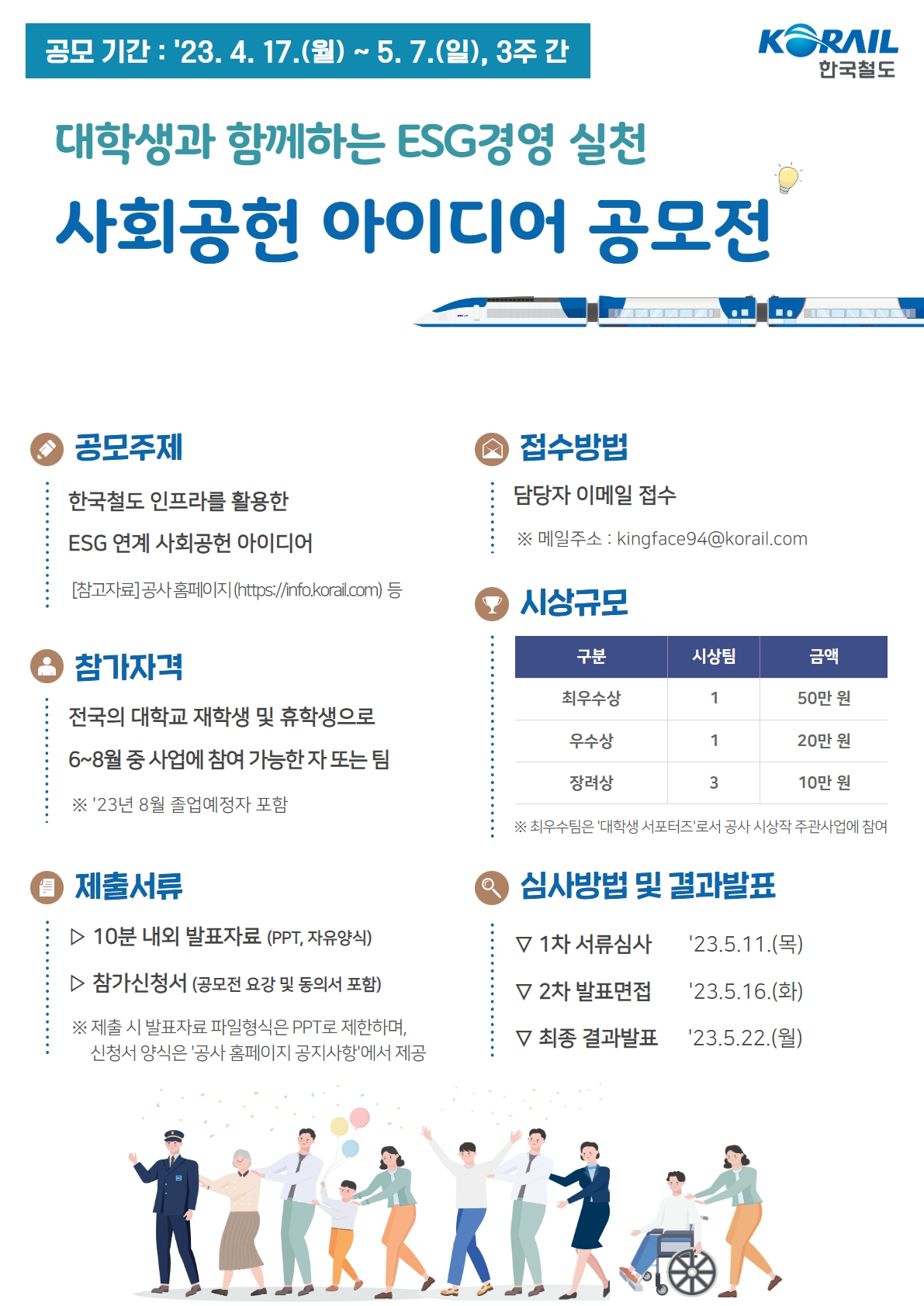 가. 공 모 명: 2023년 한국철도 대학생 사회공헌 아이디어 공모전